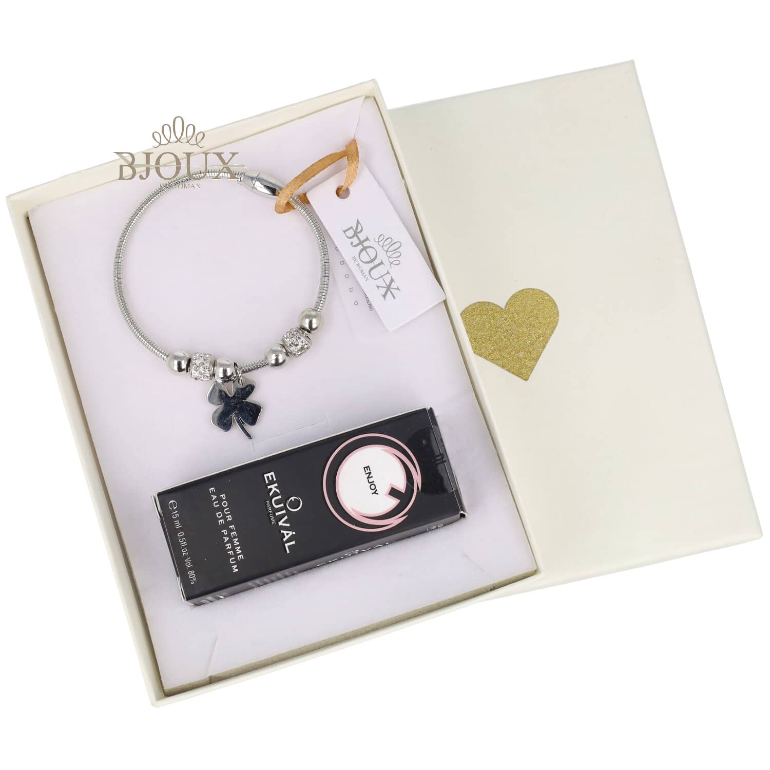 Confezione regalo per donna composta da bracciale in acciaio con chiusura a calamita e beads abbinato al profumo 15 ml ispirato a Joy Dior.
