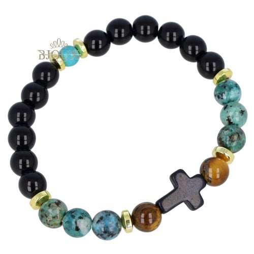 Confezione regalo per uomo composta da elastico con sfere black e multicolor con croce in pietra dura abbinato al profumo 15 ml ispirato a Cool Water Davidoff .