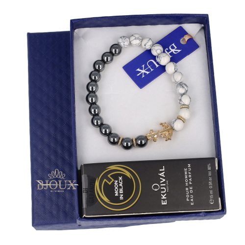 Confezione regalo per uomo composta da bracciale elastico con sfere blackย e ancora abbinato al profumo 15 ml ย ispirato a Man in Black di Bulgari