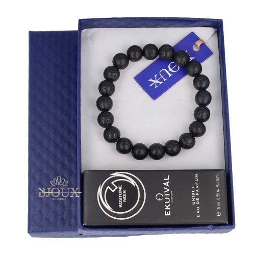 Confezione regalo per uomo composta da bracciale elastico con sfere black abbinato al profumo 15 ml ย ispirato a Costume National