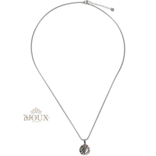 Una collana in acciaio inossidabile con catena coda di topo con ciondolo timone centrale in rodio