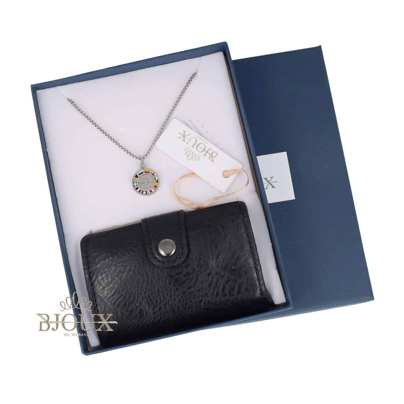 Un portacarte in ecopelle black con scomparti per banconote e carte di credito