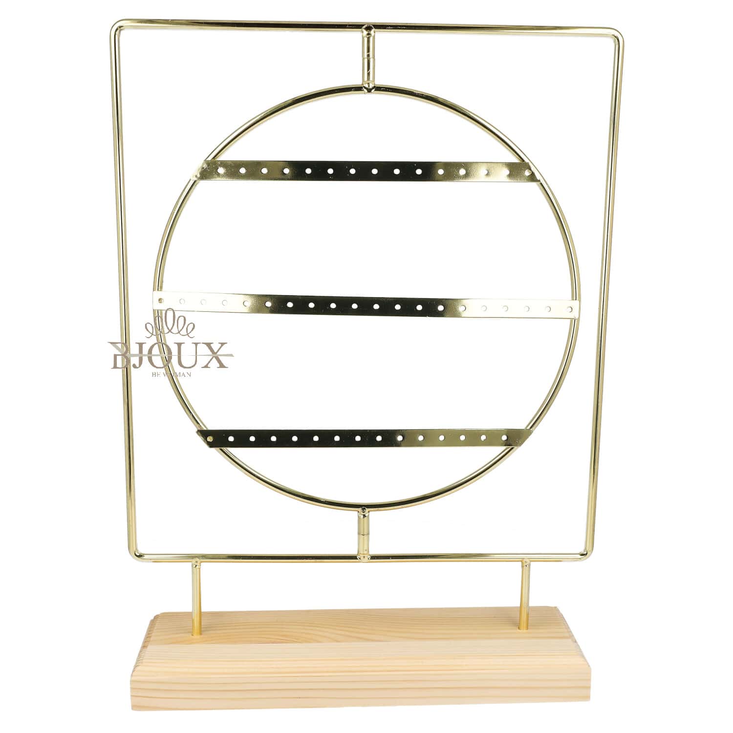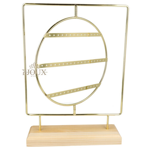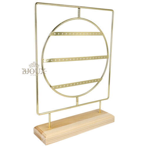 Espositore da banco porta orecchini con 50 fori. In legno e metallo dipinto in gold con tondo girevole.