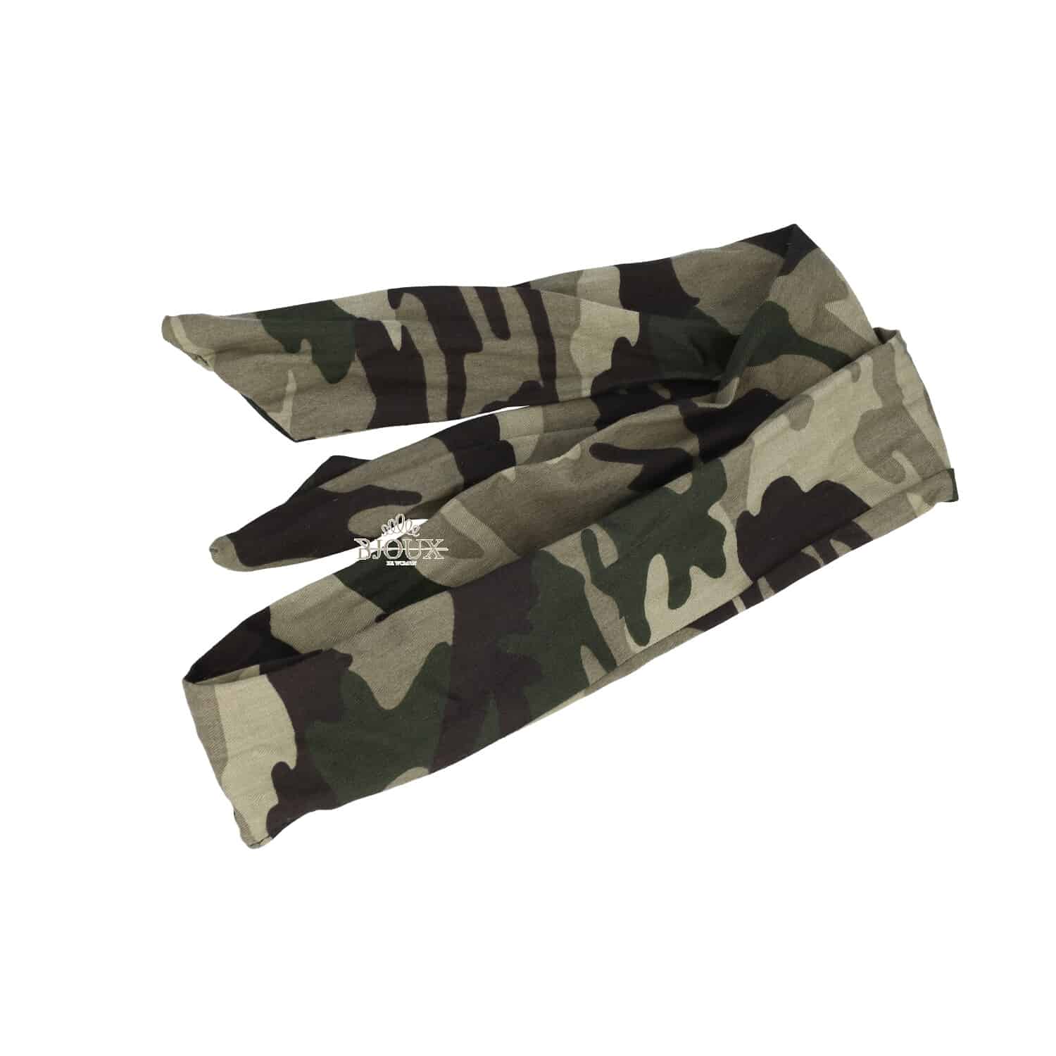 Fascia per capelli in tessuto mimetico con anima di metallo.