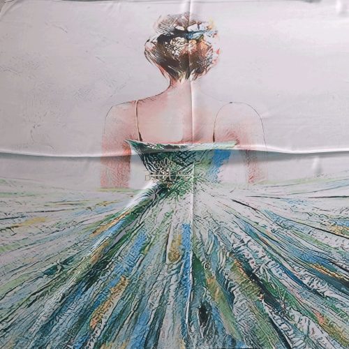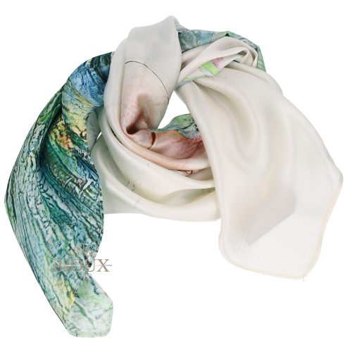 Foulard da donna in seta 70×70 doppio uso, collo / borsa . Composizione 70% silk 30% visc. Stampa fantasia