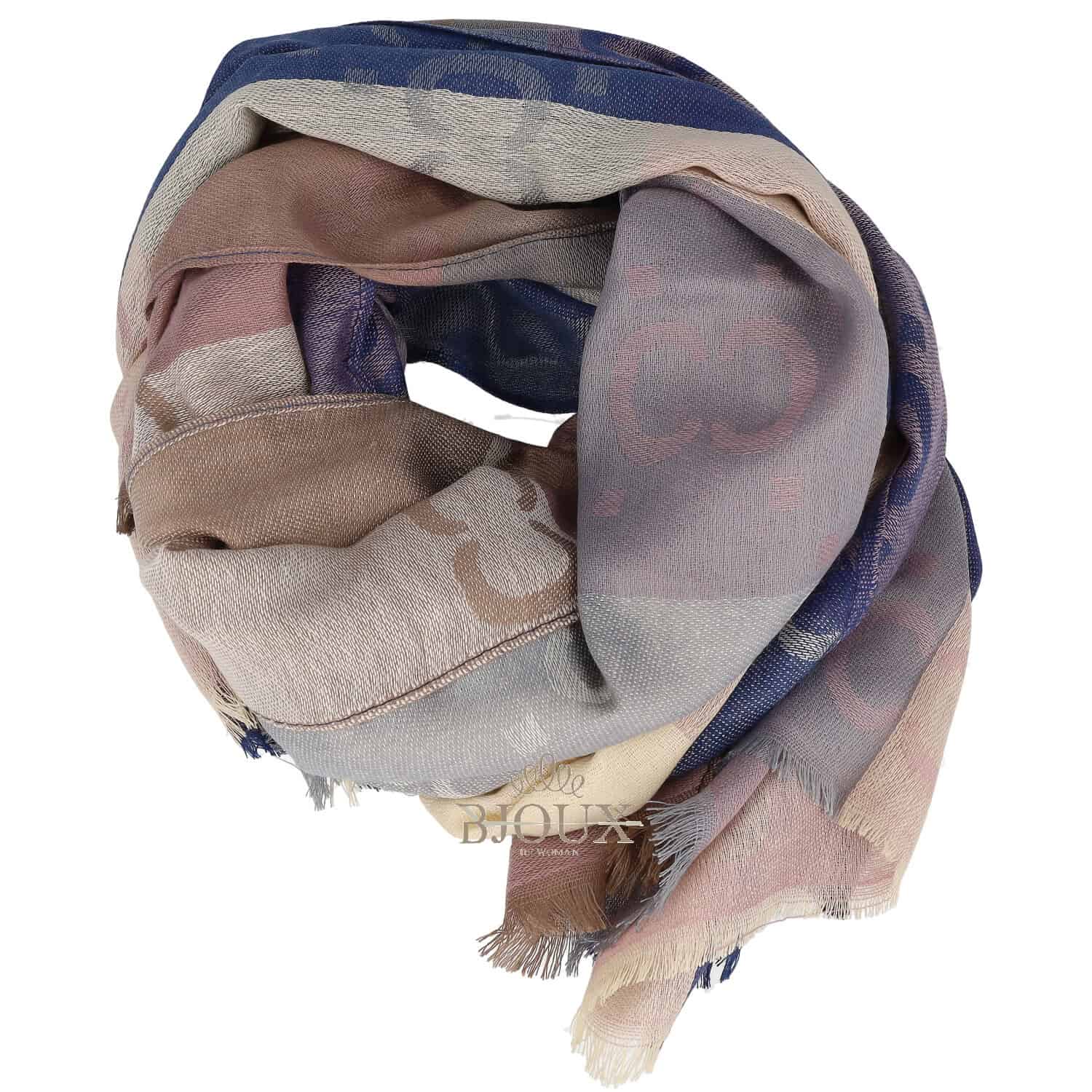 Foulard leggero con fantasia geometrica e sfumature di colore che catturano la luce. Morbido e versatile, dona un tocco raffinato a ogni look — perfetto da indossare al collo o sulle spalle
