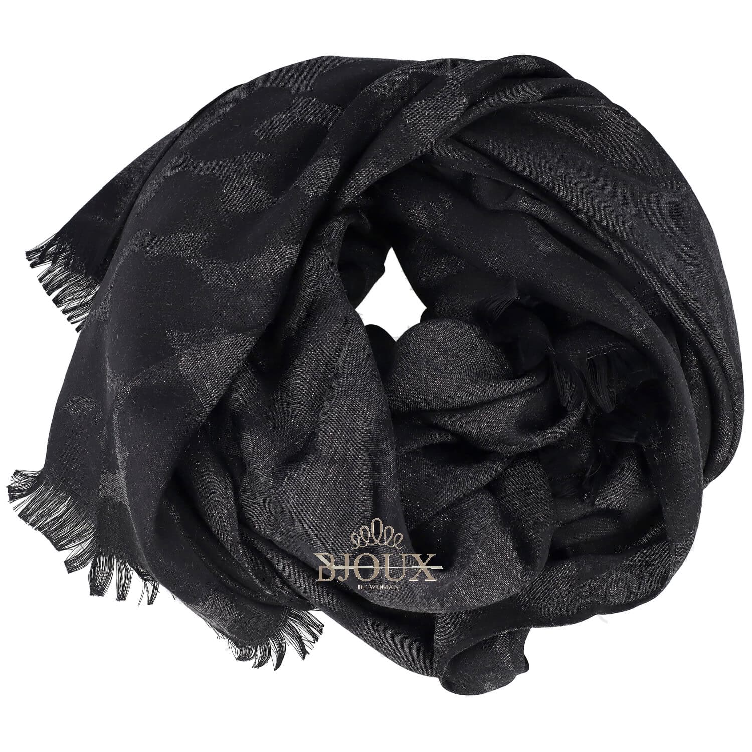 Foulard leggero con fantasia floreale e glitter che catturano la luce. Morbido e versatile, dona un tocco raffinato a ogni look — perfetto da indossare al collo o sulle spalle