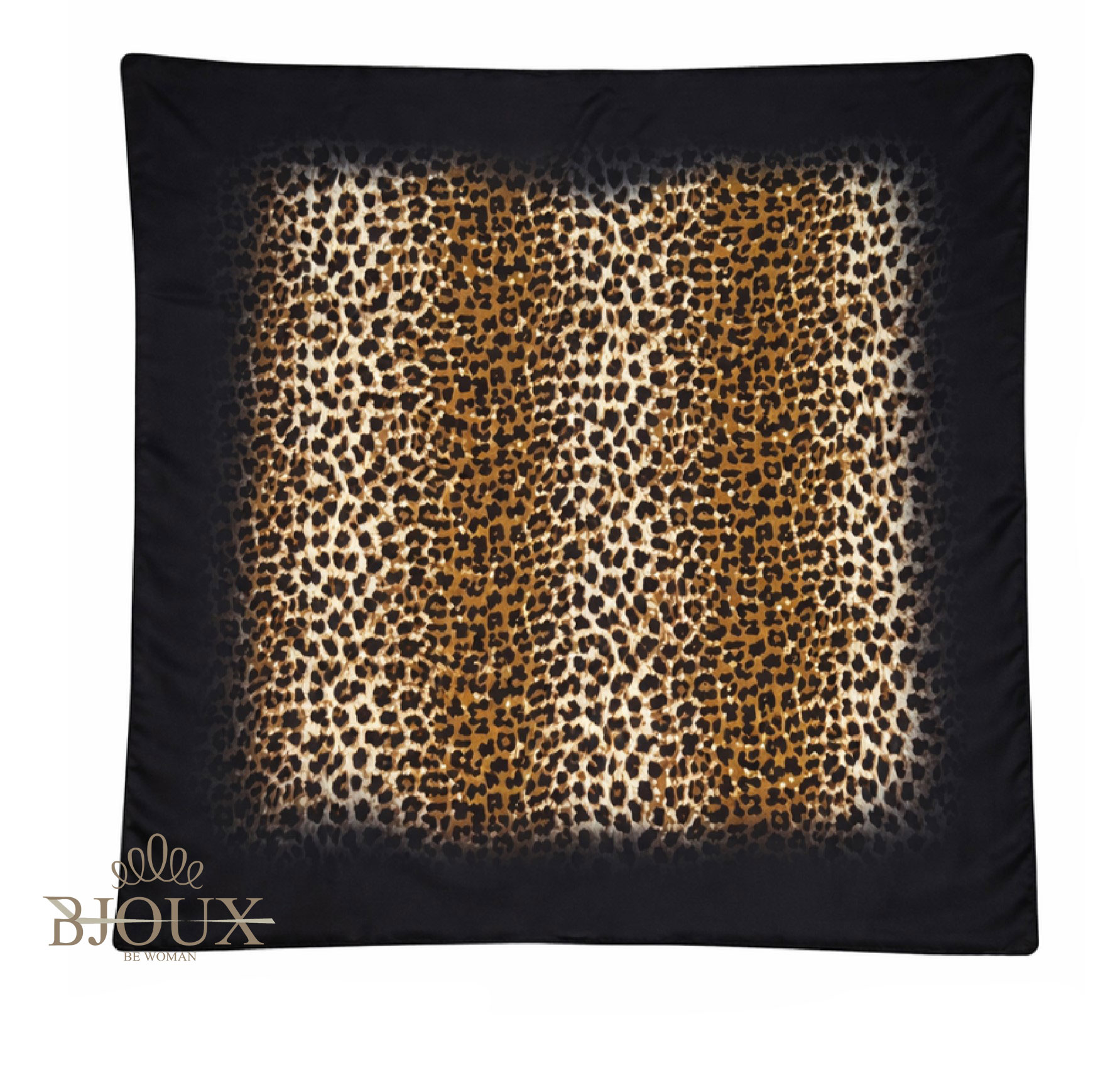 Foulard animalier dal design deciso con stampa leopardata su base nera sfumata. Sensuale, elegante e perfetto per dare carattere a qualsiasi look.