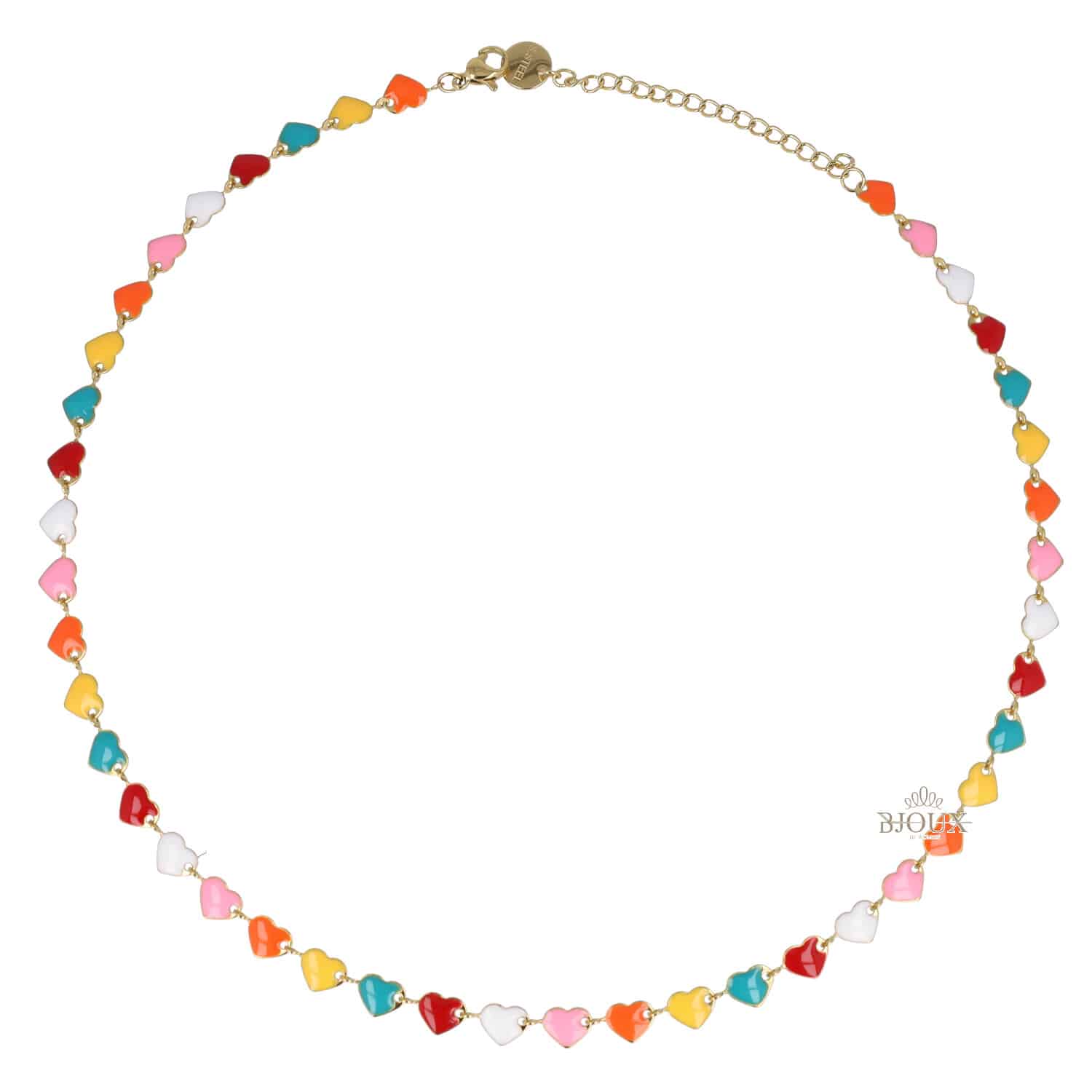 Collana girocollo di bigiotteria in acciaio inossidabile con cuoricini smaltati multicolor
