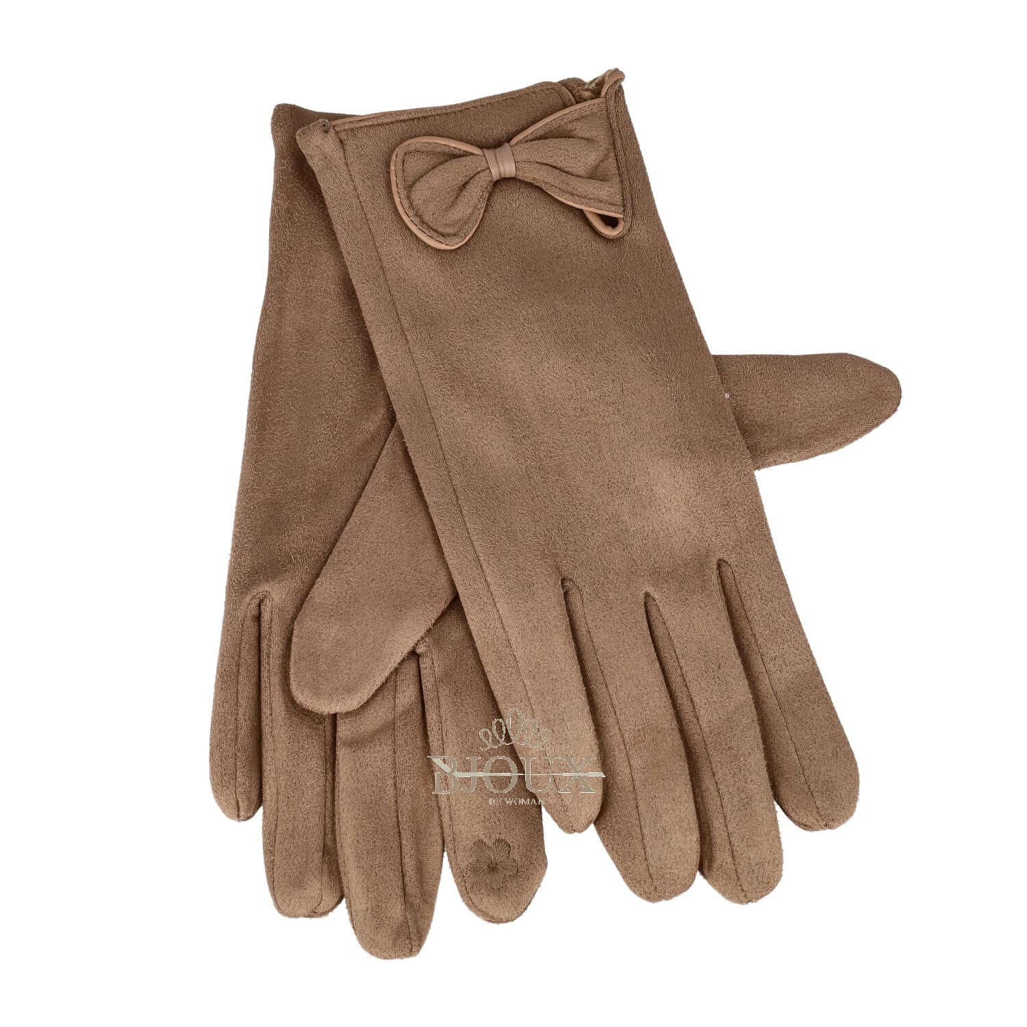 Guanto da donna in pile colorato con touch su indice. Disponibile in 6 diverse colorazioni. Decorato da fiocchetto