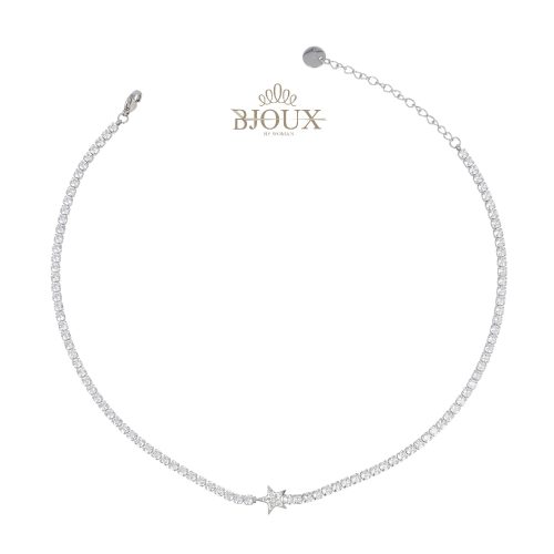 Collana girocollo in acciaio e strass con stella abbinata ad orecchini a perno anallergico. In astuccio regalo 12×16