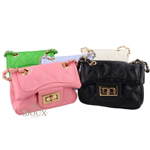 Borsetta da donna in ecopelle effetto trapunta con chiusura in ottone gold girevole. Con tracollina. Misure 13x9x4