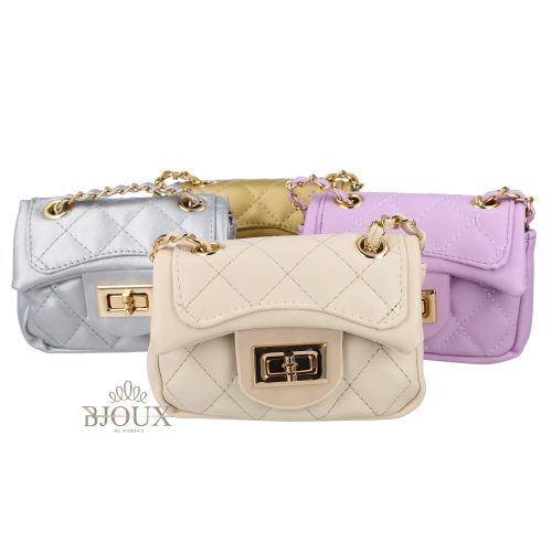 Borsetta da donna in ecopelle effetto trapunta con chiusura in ottone gold girevole. Con tracollina. Misure 13x9x4
