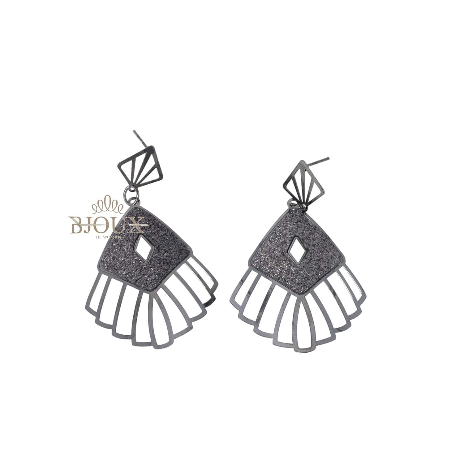 Orecchini bigiotteria economica a pendente , forma romboidale con dettagli glitter. Colore canna di fucile