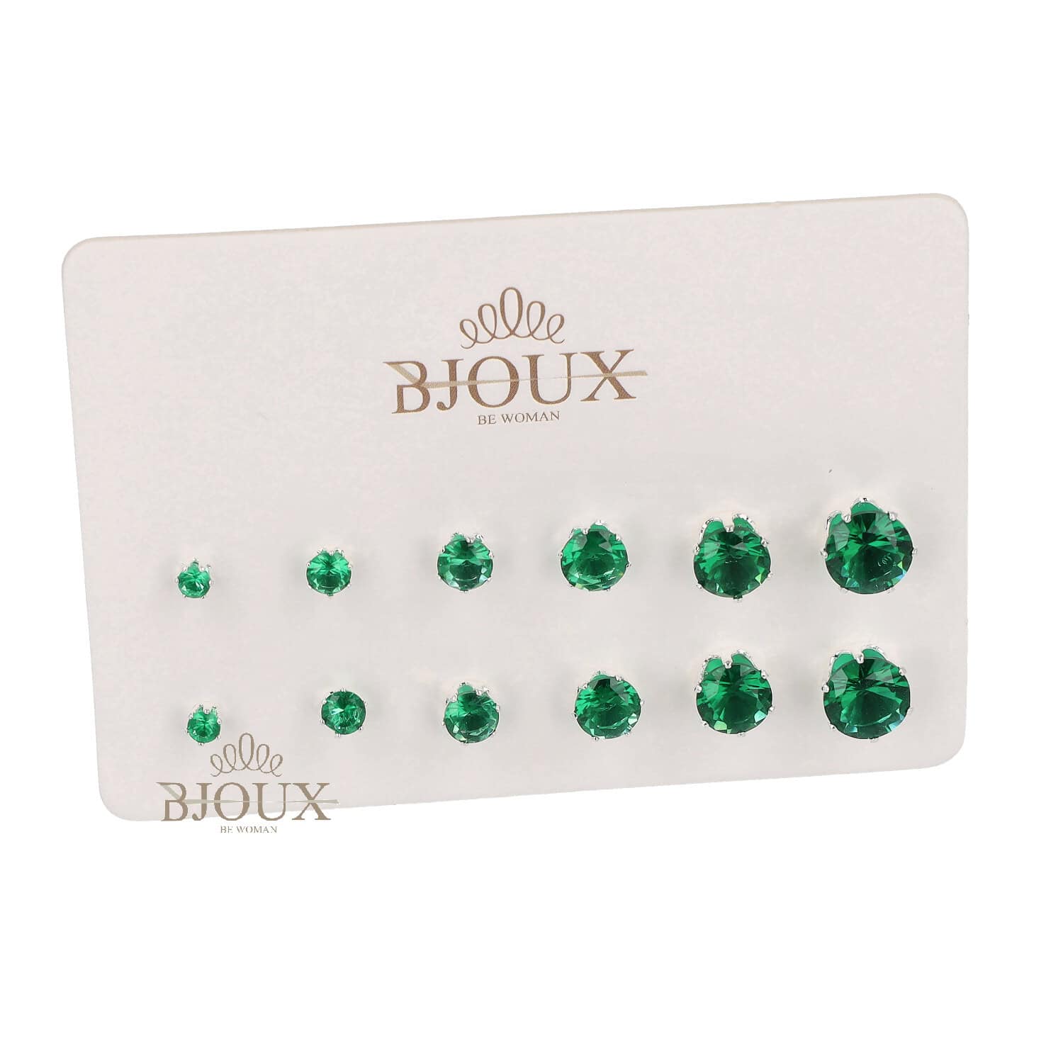 Sei paia di orecchini a lobo in ottone anallergico con punti luce a gradazione colorati da 3/4/5/6/7/8 mm