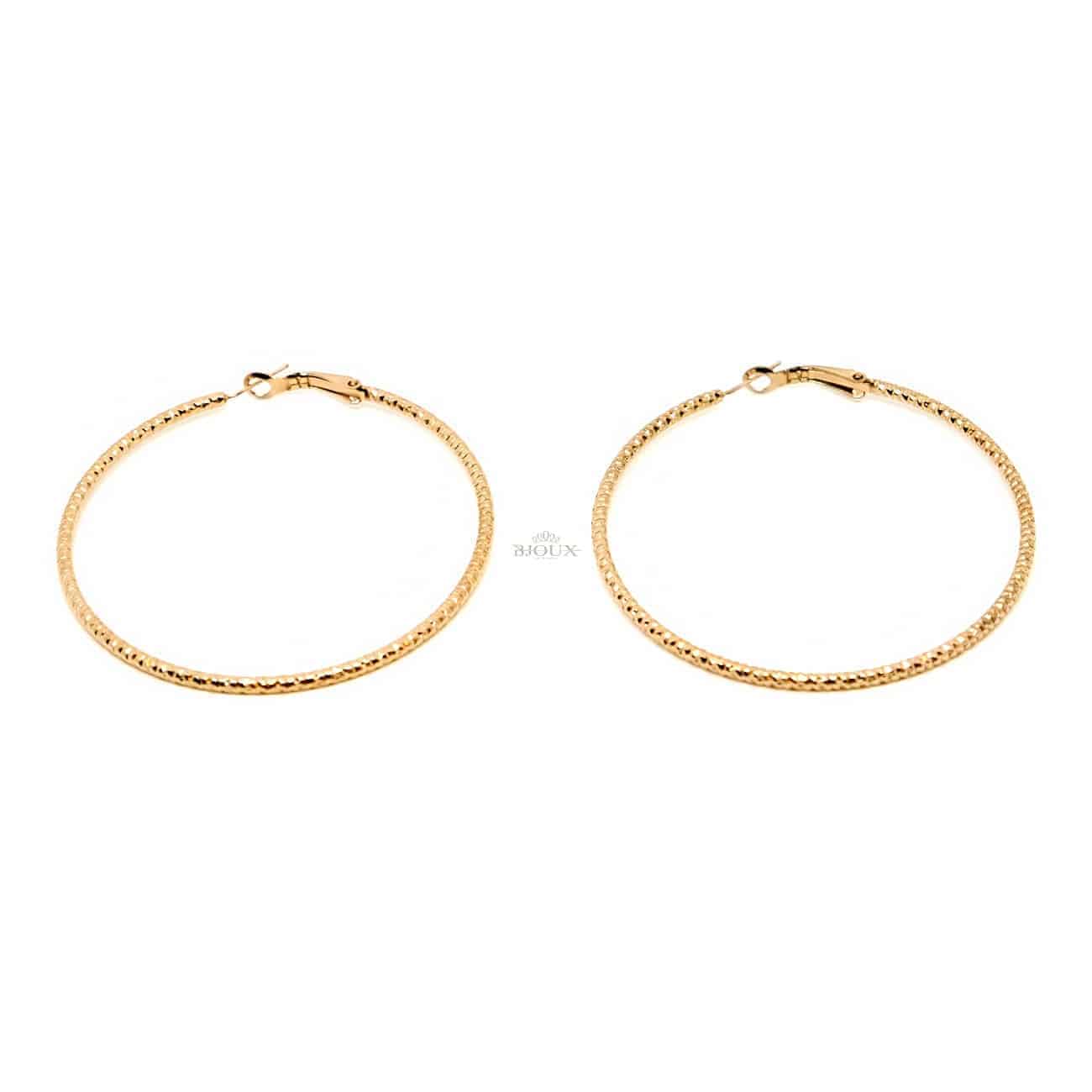 Orecchini bigiotteria da donna in acciaio inossidabile a cerchio da 60 mm. Acciaio gold rose diamantato