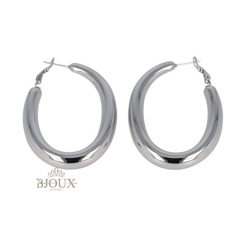 Orecchini bijouxย in acciaio anallergico a cerchio, modello bombato forma ovale, acciaio lucido. 30 mm , lunghezza 5 cm, spessore 1 cm