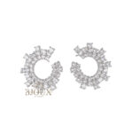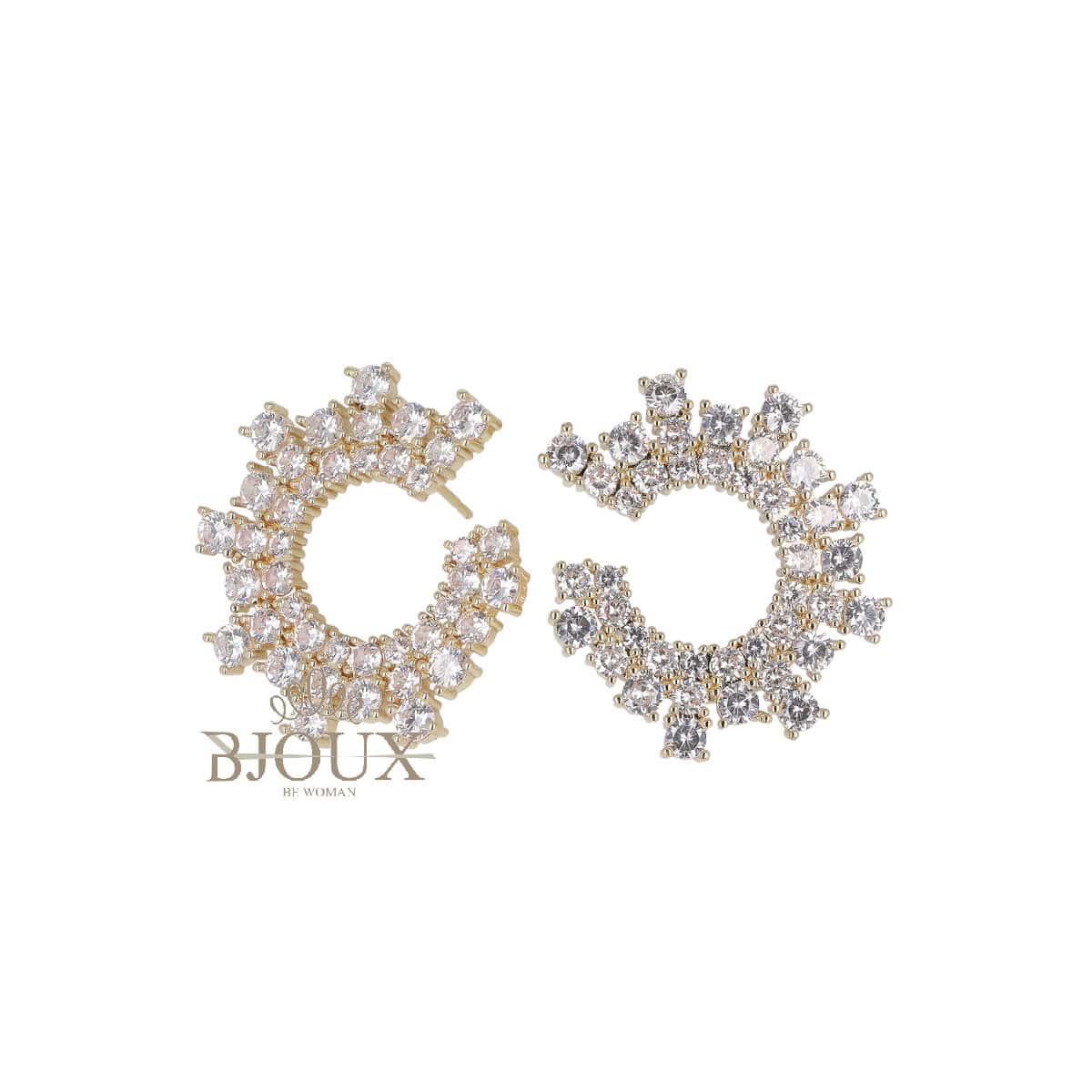 Orecchini in ottone anallergico a lobo con perno e chiusura con farfallina. Orecchini a forma di cerchio con punte e castoni punti luce da 2 mm