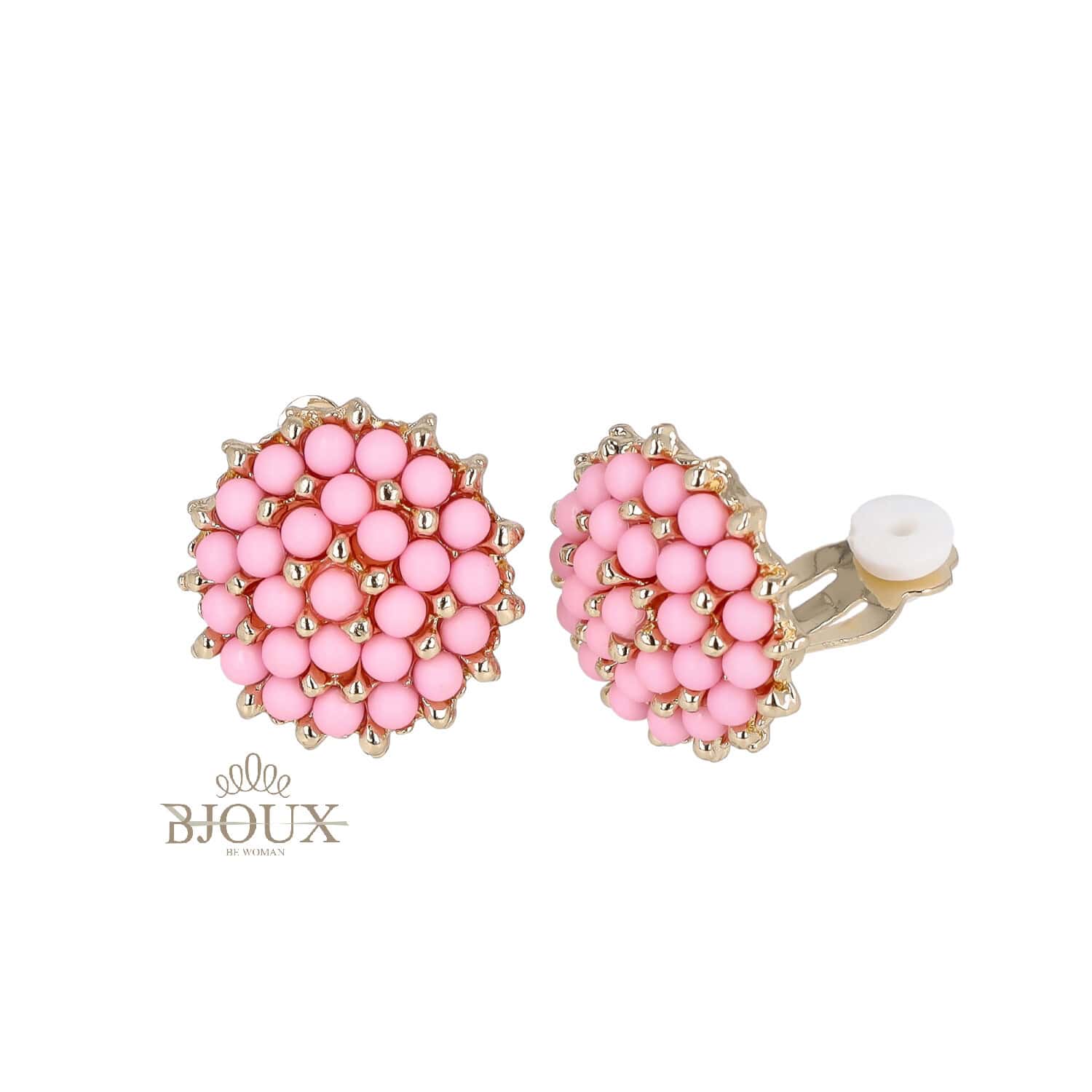 Orecchini bijoux in ottone dipinto anallergico con clips , bottone diametro 2 cm decorato da corallini colorati