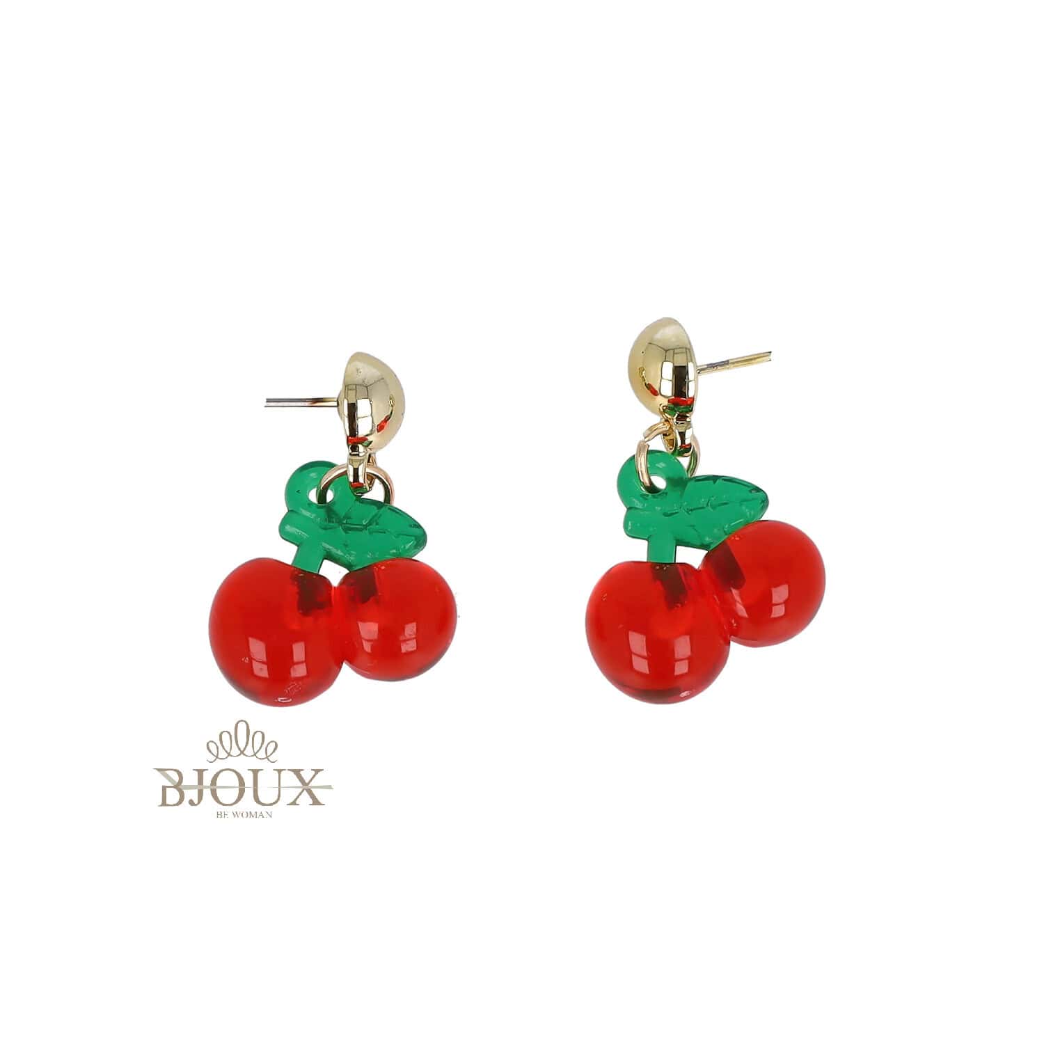 Orecchini in acciaio inossidabile modello a perno bottoncino lucido con ciondolo ciliegiaย da 2 cm