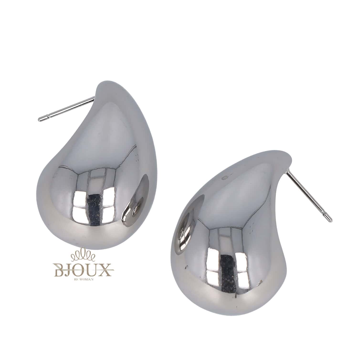 Orecchini di bigiotteria in acciaio inossidabile con perno anallergico. Goccia bombata concava 32 mm
