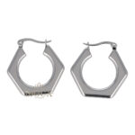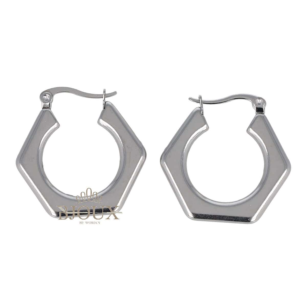 Orecchini di bigiotteria in acciaio inossidabile. Orecchini a cerchio diametro interno 15 mm caratterizzato da un design geometrico con chiusura a ponte