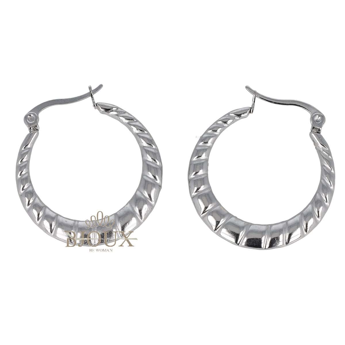 Orecchini di bigiotteria in acciaio inossidabile. Orecchini a cerchio croissant da 25 mm caratterizzato da un design a mezzaluna con chiusura a ponte