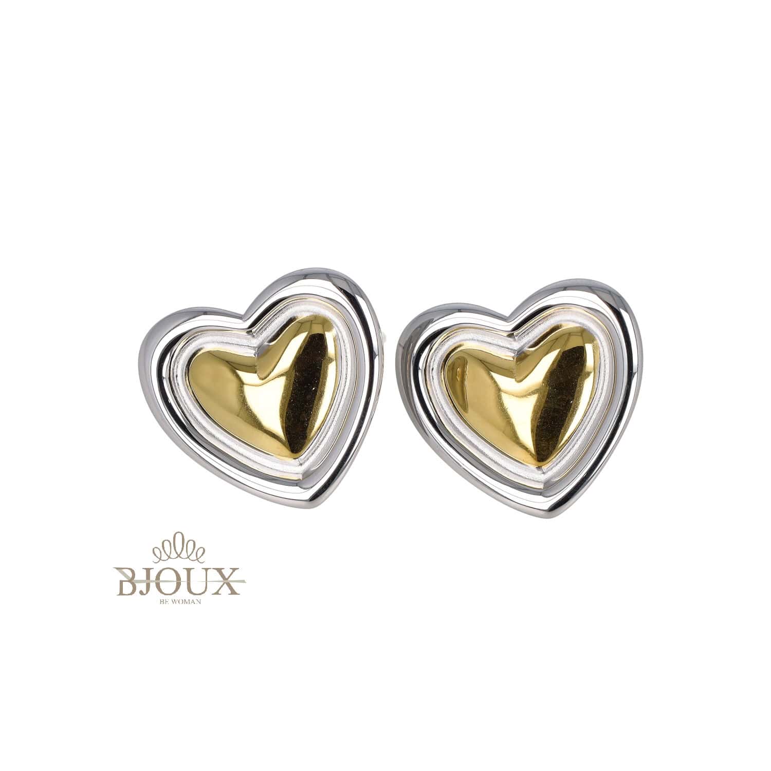 Orecchini donna in acciaio inossidabile anallergico con perno e chiusura a farfallina, cuore a due tondi. 3 cm