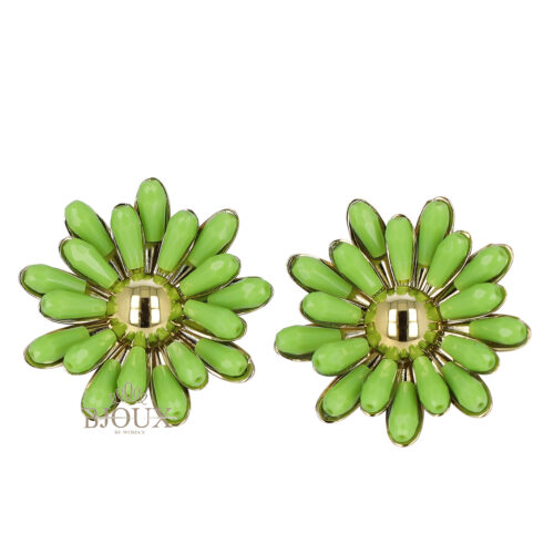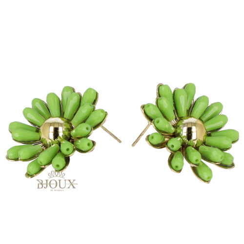 Orecchini di bigiotteria in acciaio inossidabile a perno, con fiore maxi decorato da pietre , diametro 3 cm