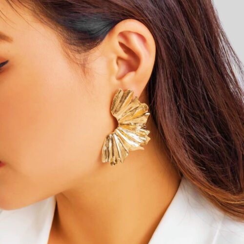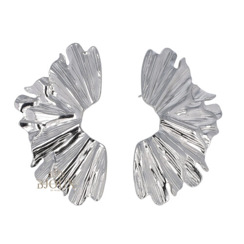 Orecchini di bigiotteria. Orecchini acciaio inossidabile con perno, mezzo scudo ondulato. Lungh. 5,5 cm