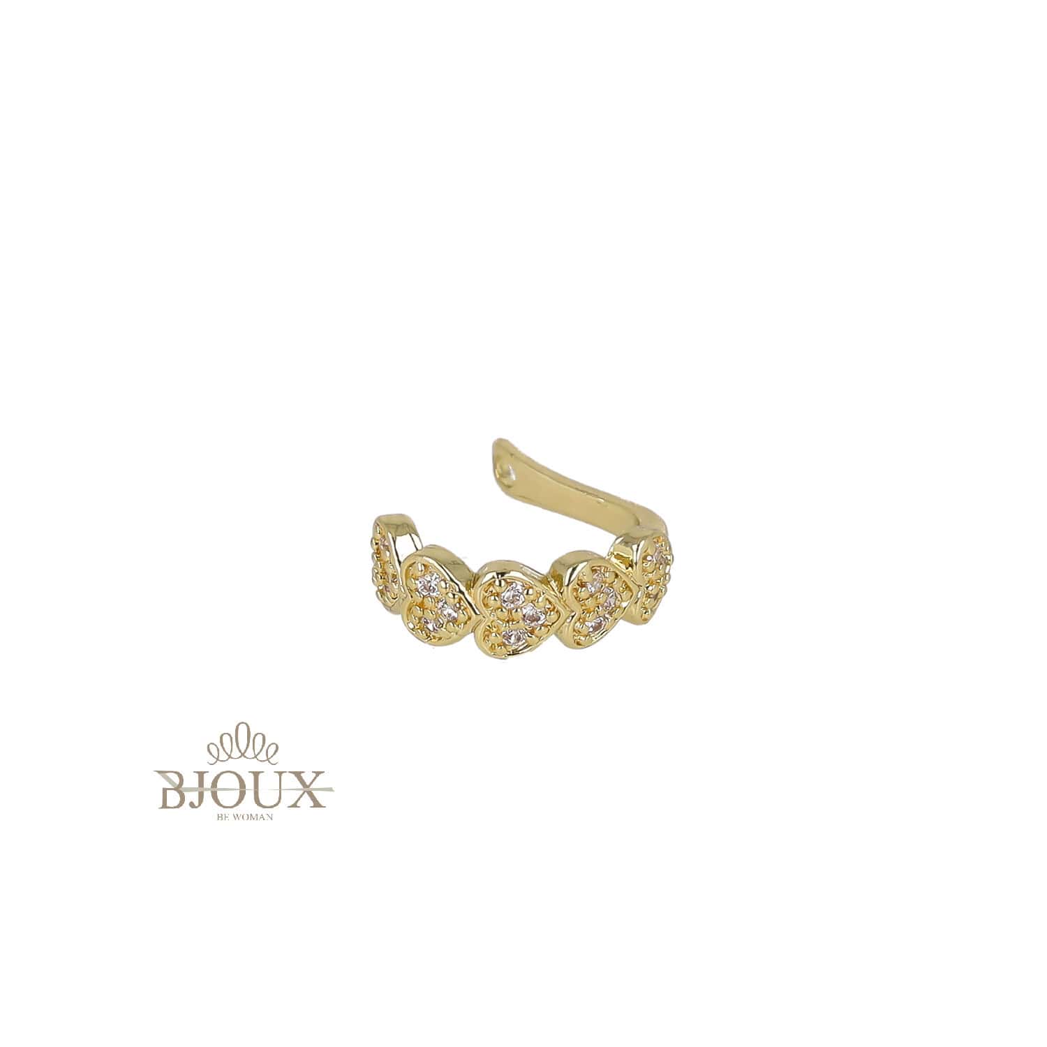 Mono orecchino bijoux in ottone dipinto anallergico, per orecchio senza buco. Quattro cuoricini piccoli decorati da micro cristalli , h. 0,5 cm