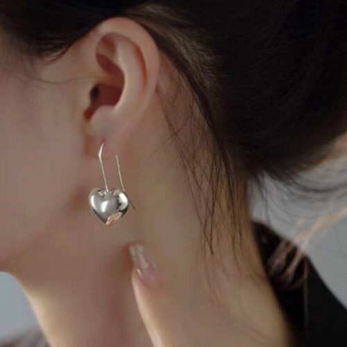 Orecchini da donna in acciaio inox con perno ad amo con cuore specchiato da 1,5 x 1,8 cm. Colore oro o rodio