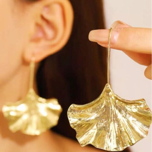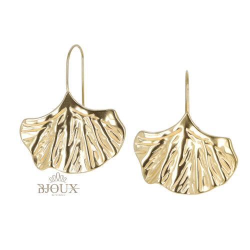 Orecchini da donna in acciaio inox con perno ad amo con foglia rigata da 2,5 x 2 cm. Colore oro o rodio