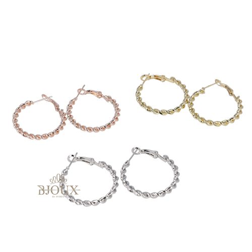 Orecchini di bijoux in ottone anallergico a cerchio. Tre coppie di cerchi effetto corda su card diametro 25 mm