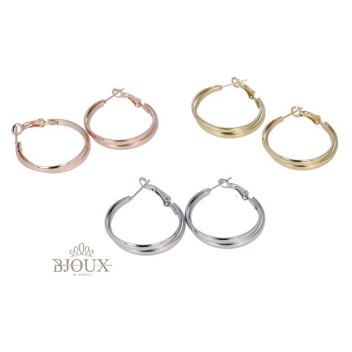Orecchini di bijoux in ottone anallergico a cerchio. Tre coppie di cerchi doppio filo su card diametro 25 mm