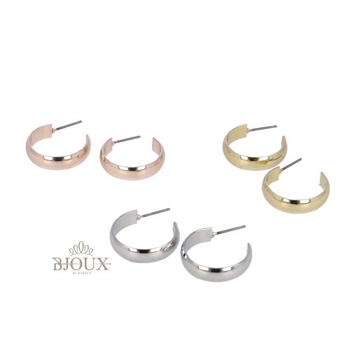 Orecchini di bijoux in ottone anallergico a cerchio. Tre coppie di orecchini modello gilda con perno effetto specchio liscio , 18 mm