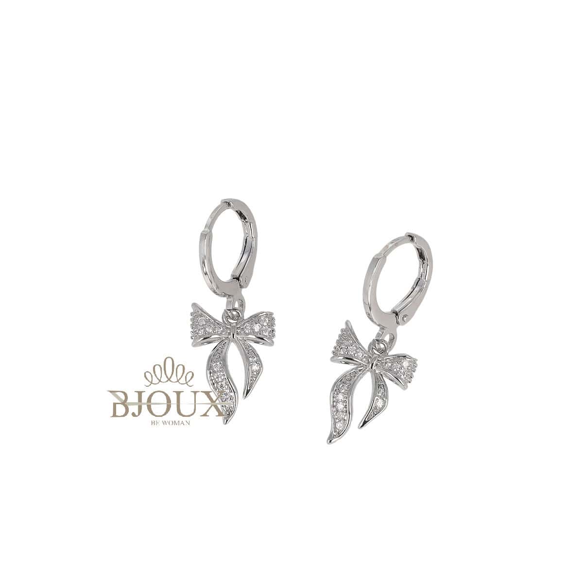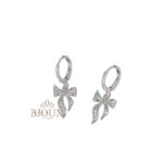 Orecchini bigiotteria donna a cerchietto in metallo anallergico. Pendente ciondolo fiocchetto in strass. Cerchietto da 10 mm – Pendente da 1,5 cm