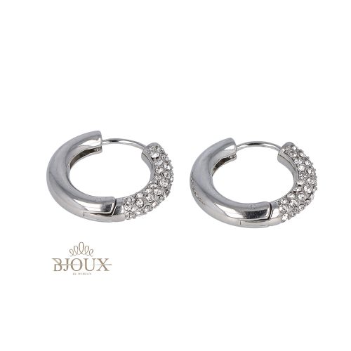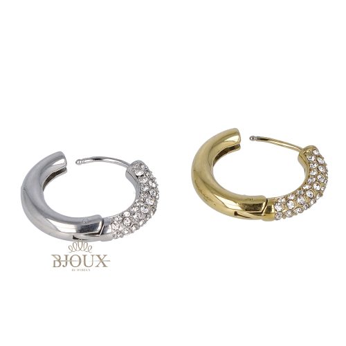 Orecchini di bigiotteria. Orecchini acciaio inossidabileย cerchietto 20 mm con chiusura a pressione con decoro di strass kry