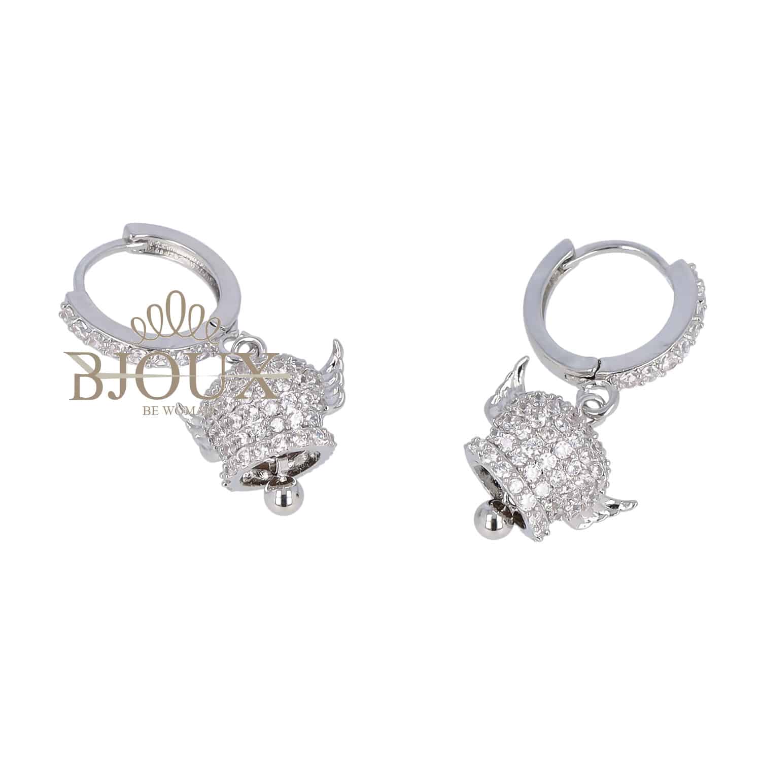 Orecchini bigiotteria anallergici a cerchietto da 10 mm con campanelli strass e ali.