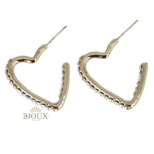 Orecchini bijoux in ottone dipinto anallergico con perno, a forma di cuore 25 mm con strass interni ed esterni