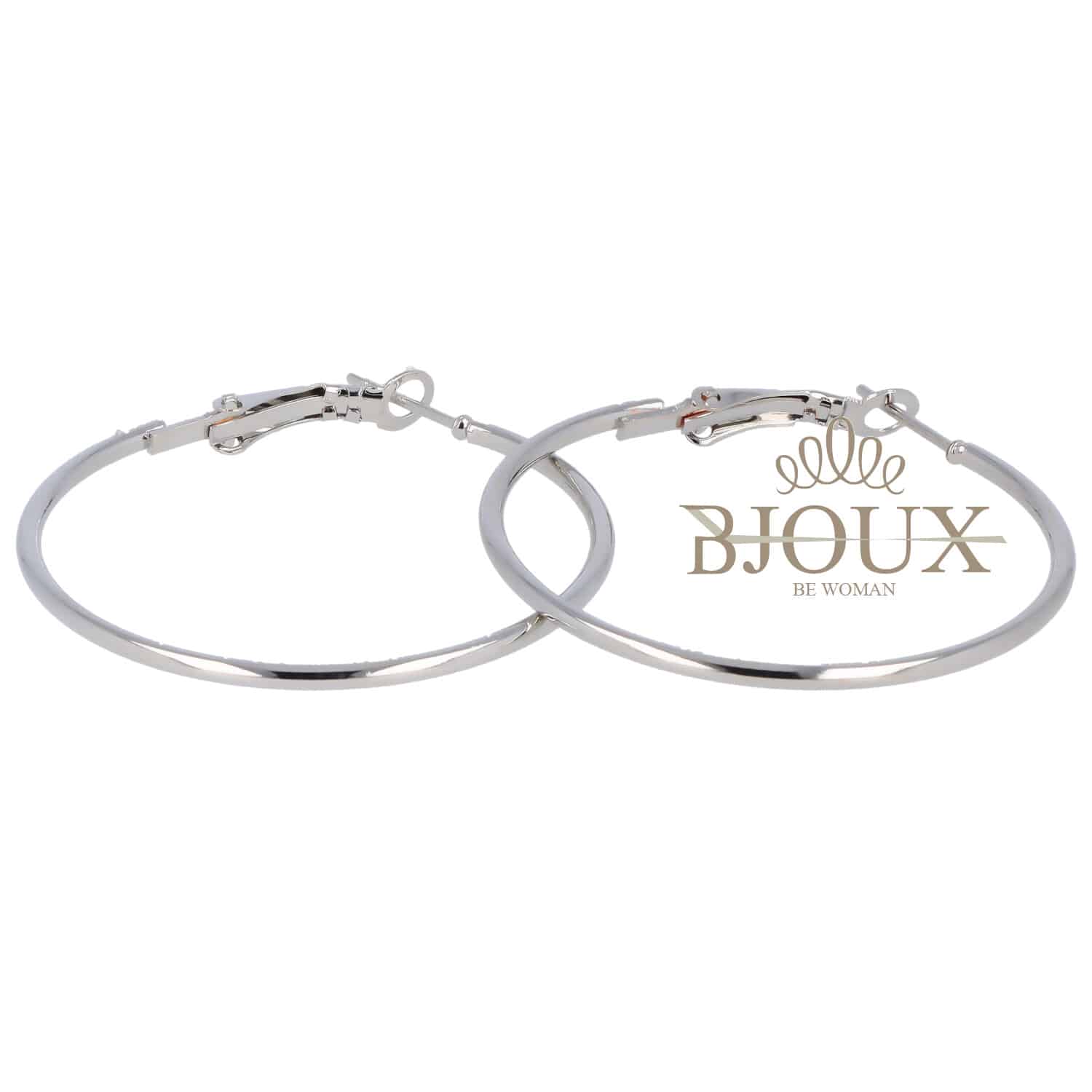 Orecchini a cerchio classico in metallo anallergico dipinto color argento , diametro 40 mm.