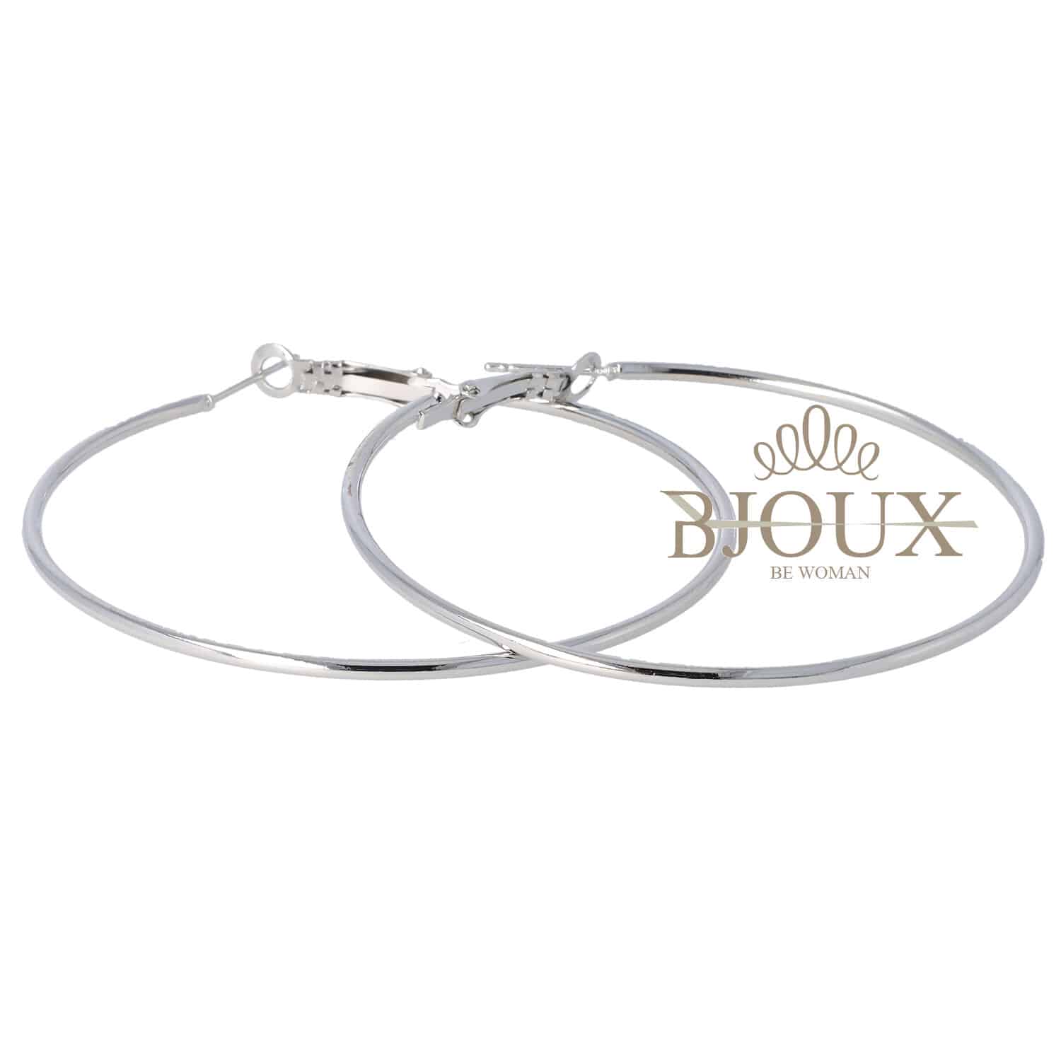 Orecchini a cerchio classico in metallo anallergico dipinto color argento , diametro 60 mm.