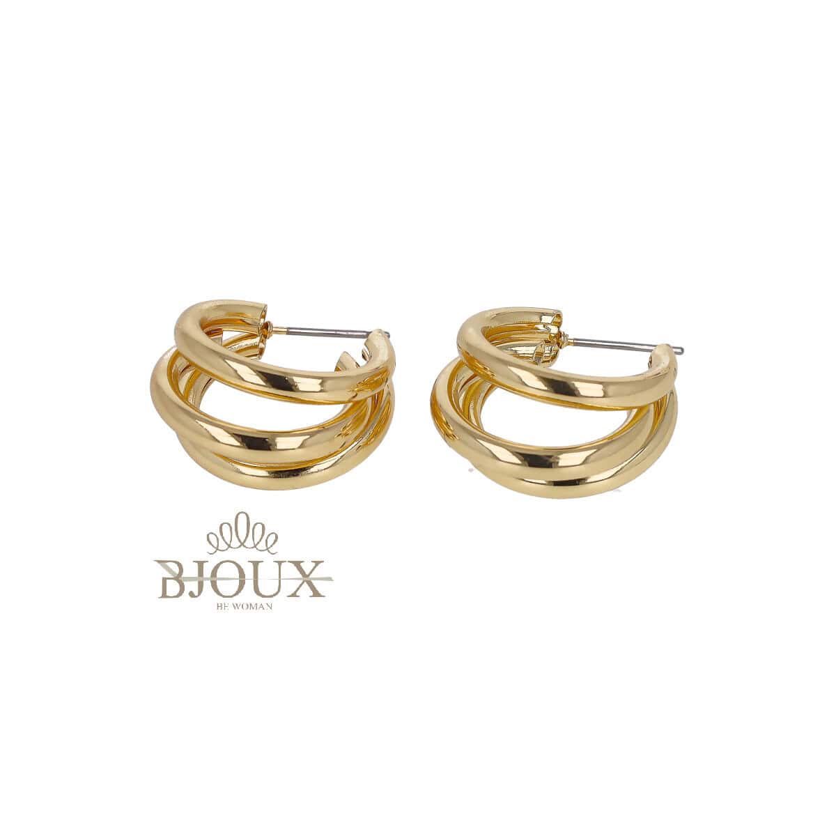 Orecchini bijoux in ottone anallergico dipinto in gold e rodio . Forma a cerchio con perno a farfallina. Diametro 2 cm