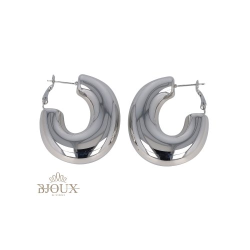 Orecchini bijouxย in acciaio anallergico a cerchio, modello bombato forma ovale, acciaio lucido. 30 mm , lunghezza 3,5 cm, spessore 1,2 cm