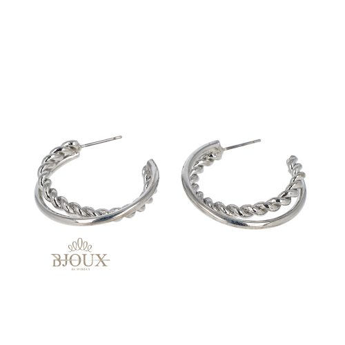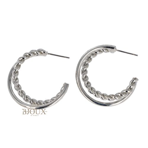 Orecchini di bigiotteria in ottone diametro 30 mm con perno anallergico due fili con catena. Color rodio