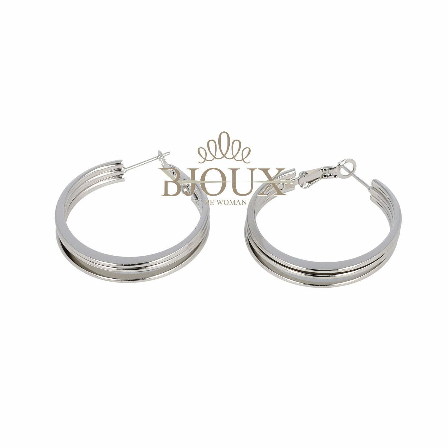 Orecchini da donna di bigiotteria in acciaio inossidabile a cerchio da 30 mm. Composto da 3 fili rodiati.