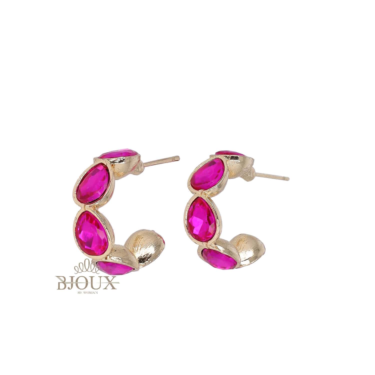 Orecchini con in ottone anallergico dorato a cerchio 20 mm con castoni a goccia colorata.