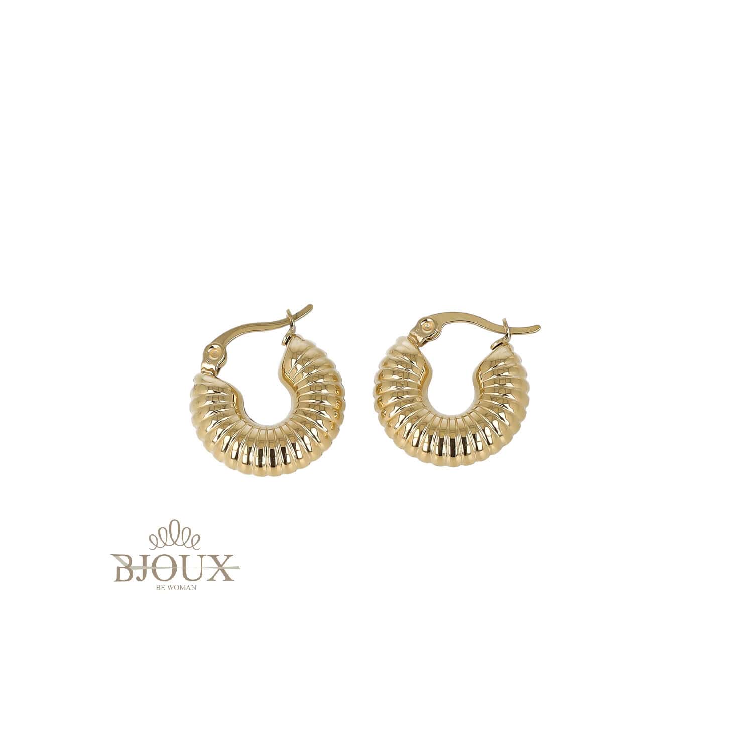 Cerchietti piccoli a sezione bombata con effetto rigato, ideali per tutti i giorni.Disponibili in acciaio oro e acciaio rodio.