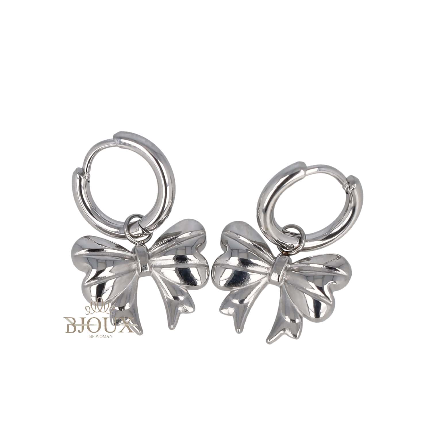 Orecchini di bigiotteria donna in acciaio inossidabile anallergico. Orecchini a cerchietto con fiocco da 1,5 cm