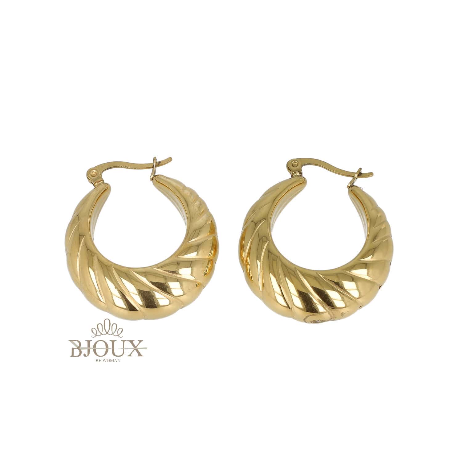 Orecchini a cerchio con lavorazione intrecciata a spirale, eleganti e luminosi.Disponibili in oro e rodio.